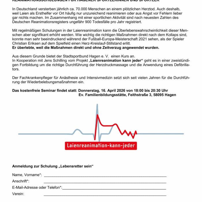 Sehr geehrte Damen und Herren, anbei finden Sie unsere Einladung zur Schulung Laienreanimation. Der...