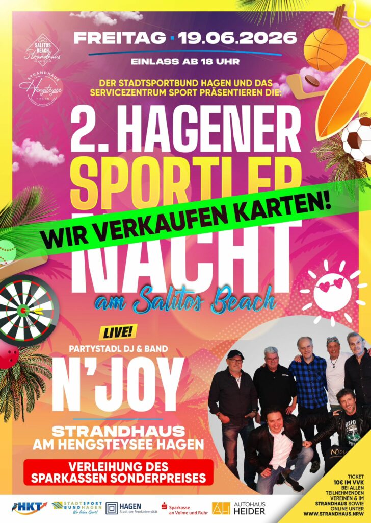 am Freitag, 19.06.2026 wird der Salitos Beach am Strandhaus Hengsteysee zur Bühne für die „2. Hagener Sportlernacht“.